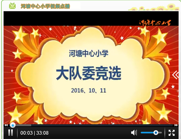 10月中旬,河塘中心小学少先队大队委竞职演说活动通过校园电视录播形式隆重举行。