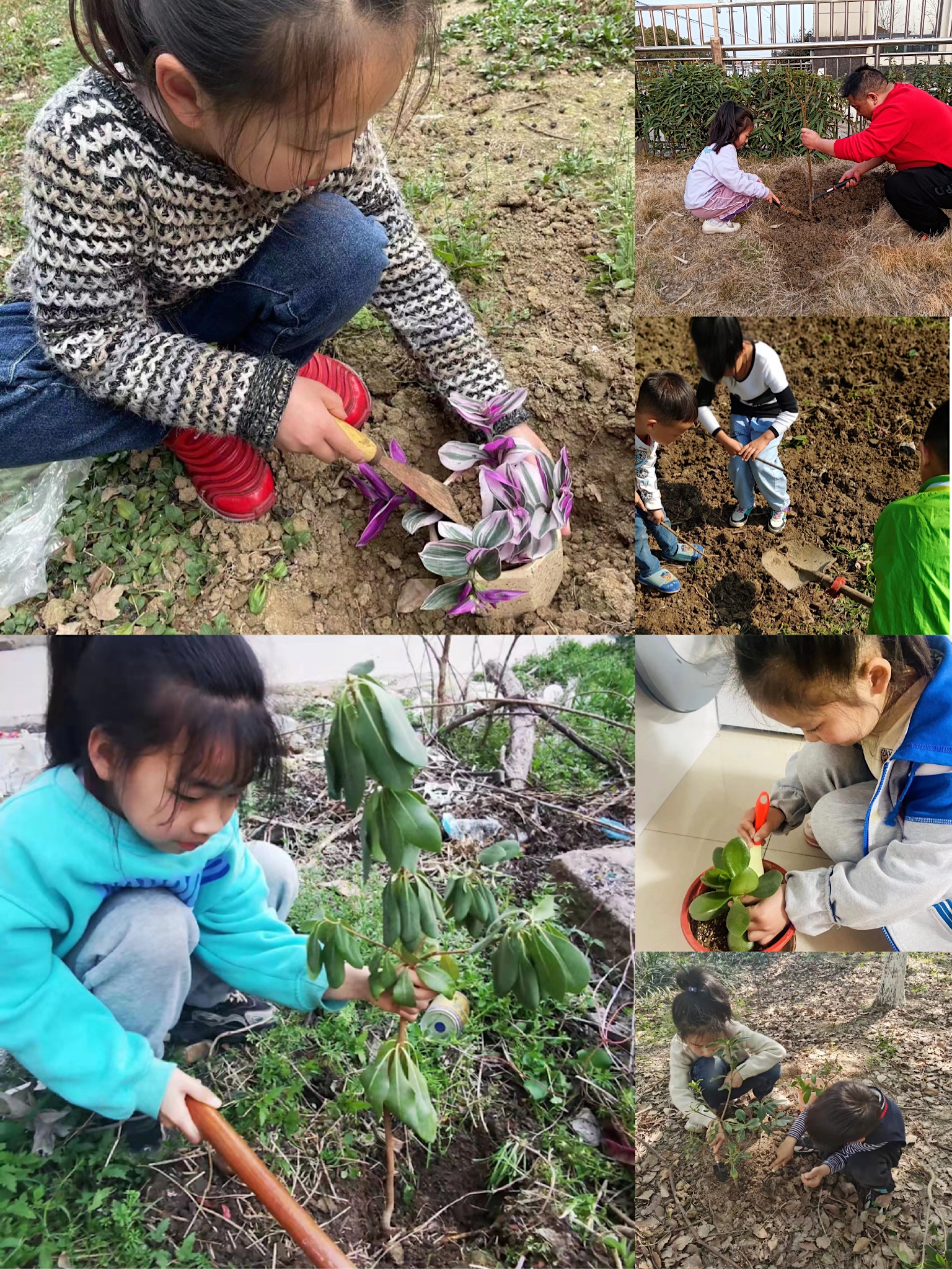 一年级学生通过“我为小树苗浇水”、“亲手种下一株苗”和“设计护绿环保卡”等活动进行争章考核。活动中,学生们了解植树节的由来和意义,知道怎样保护树木、爱护花草;学生们感受着大自然的美好,从下埋下一颗保护环境的责任心;学生们愉快的参加劳动,从小树立劳动光荣,在劳动中培养合作,吃苦耐劳的精神。